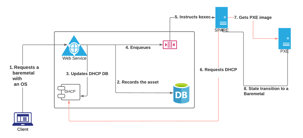 We have a nomenclature for identifying these newly racked up, promoted assets called SPAREs. SPAREs are raw entities waiting to be picked up by teams that have a requirement. The SPAREs are identified by different machine classes that help the user select the configuration of their choice. The PIOUS uses a kexec related trigger, used in the provisioning flow, that has a “maker-checker” enabled to load the OS of choice, which will be covered later.
