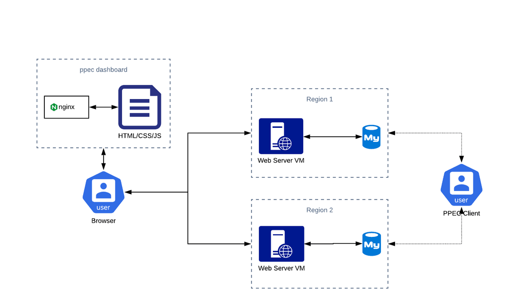 PPEC Dashboard provides a single place for the user to view details about assets across regions that the user has access to. There are UI notions that compliment the client, not entirely yet, however, work for the same is in progress. UI has a dashboard that almost mimics the Client and has the ability to switch across different regions, in order to access functionalities that relate to a specific region.